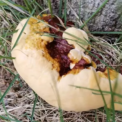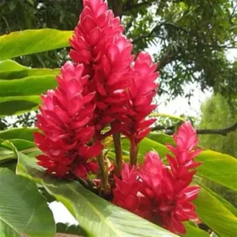 花序顶生,直立,长23-65厘米,花序轴稍呈“之”字形弯曲,薄被短柔毛;苞片4-7枚,绿色,长7-11厘米,花在每一苞片内1-3朵或更多,开放时突露,花被片红色,顶端绿色,狭圆柱形,长5.5厘米,基部4-5毫米处连合呈管状;退化雄蕊宽4-5毫米。果三棱形,灰蓝色,长8-10毫米,内有种子1-3颗。