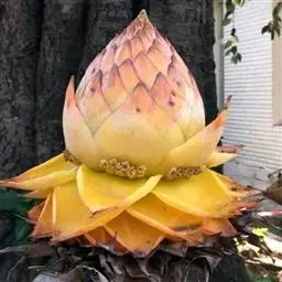 紫苞芭蕉形如一枝亭亭玉立、含苞待放的荷花,但却开在高高的芭蕉树上,这就是紫苞芭蕉。