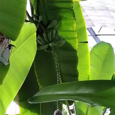 香蕉’),芭蕉科芭蕉属多年生草本植物,植株丛生,有匐匍茎;假茎浓绿有黑色斑点;叶片长圆形,…