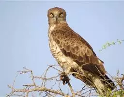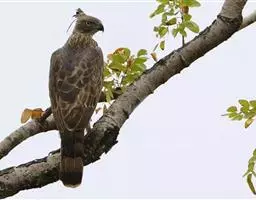 鹰雕,是隼形目鹰科鹰雕属大型猛禽,俗称熊鹰、赫氏角鹰。其上体暗褐色,头后冠羽常竖立起,…