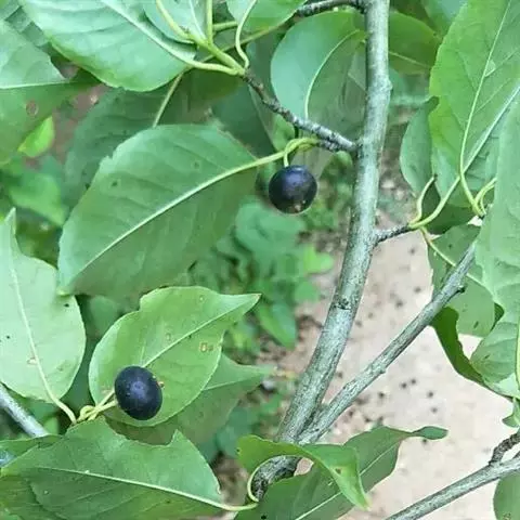多枝常绿灌木,高可达5米;树皮灰黑色,幼枝灰色或褐色,具纵棱角,密被短柔毛,较老的枝具半月形隆起叶痕和疏的椭圆形或圆形皮孔。 叶生于1-2年生枝上,叶片革质,倒卵形,椭圆形或长圆状椭圆形,长1-3.5厘米,宽5-15毫米,先端圆形,钝或近急尖,基部钝或楔形,边缘具圆齿状锯齿,叶面亮绿色,干时有皱纹,除沿主脉被短柔毛外,余无毛,背面淡绿色,无毛,密生褐色腺点,主脉在叶面平坦或稍凹入,在背面隆起,侧脉3-5对,与网脉均不明显;叶柄长2-3毫米,上面具槽,下面隆起,被短柔毛;托叶钻形,微小。雄花1-7朵排成聚伞花序,单生于当年生枝的鳞片腋肉或下部的叶腋内,或假簇生于二年生枝的叶腋内,总花梗长4-9毫米,二级轴长仅1毫米,花梗长2-3毫米,近基部具1-2枚小苞片,单花花梗长4-8毫米,近中部具小苞片1-2枚;花4基数,白色;花萼盘状,直径约2毫米,无毛,4裂,裂片阔三角形,边缘啮蚀状;花瓣4,阔椭圆形,长约2毫米,基部稍合生;雄蕊短于花瓣,花药椭圆体状,长约0.8毫米;退化子房圆锥形,顶端尖。雌花单花,2或3花组成聚伞花序生于当年生枝的叶腋内;花梗长3.5-6毫米,向顶端稍增粗,具纵棱脊,近中部具1或2枚小苞片;花4基数,花萼直径约3毫米,4裂,裂片圆形;花冠直径约6毫米,花瓣卵形,长 约3毫米,基部合生;退化雄蕊长为花瓣的1/2,不育花药箭头形;子房卵球形,长约2毫米,花柱偶尔明显,柱头盘状,4裂。果球形,直径6-8毫米,成熟后黑色;果梗长4-6毫米;宿存花萼平展,直径约3毫米;宿存柱头厚盘状,小,直径约1毫米,明显4裂;分核4,长圆状椭圆形,长约5毫米,背部宽3-3.5毫米,平滑,具条纹,无沟,内果皮革质。花期5-6月,果期8-10月。