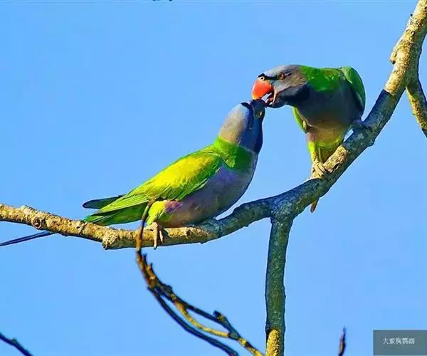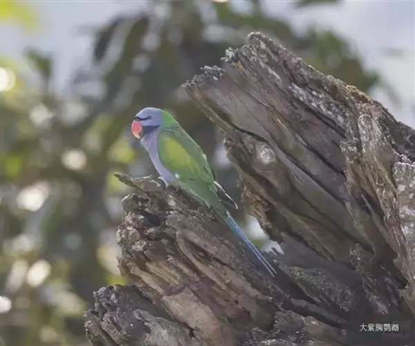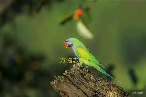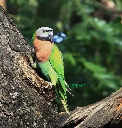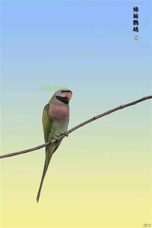 绯胸鹦鹉(学名:Psittacula alexandri):是中型鸟类,共有8个亚种。体长26-36厘米。是典型的攀禽,鸟喙强劲有力,喙钩曲,上颌具有可活动关节,喙基部具有腊膜。肌肉质舌厚。脚短,强大,对趾型,两趾向前两趾向后,适合抓握和攀援生活。头葡萄灰色,眼周沾绿色,前额有一窄的黑带延伸至两眼。上体绿色,颏白色,喉和胸葡萄红色或砖红色。