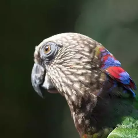 鹰头鹦鹉:鹰头鹦鹉体长35厘米,体重190-277克。额头和顶冠具柔和的白色,眼先深褐色,…