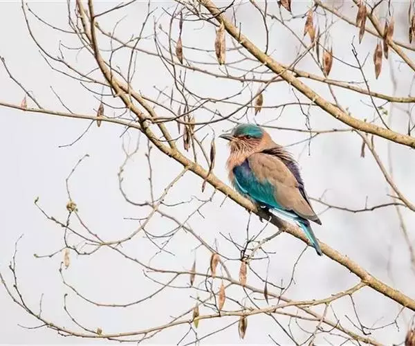 雌鸟头较蓝灰,喉、胸橙红色,缺少紫灰色沾染,中央尾羽一般较雄鸟为短。 幼鸟头葡萄棕色,额沾紫灰色,头顶以下逐渐变为绿色。下体变为绿色,喉、胸略沾紫色,中央尾羽较短。