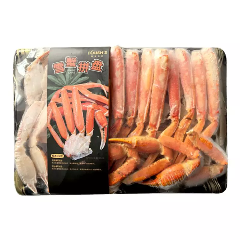 雪蟹又称皮匠蟹、皇后蟹,生活在水温较低的海域,体型较大,足长而肉质丰满。市场常见的雪蟹品种有北太平洋雪蟹(产地美国阿拉斯加、俄罗斯远东、北朝鲜、日本北海道等地)和北大西洋雪蟹(产地加拿大纽芬兰、新不伦瑞克、新斯科特、爱德华王子岛等地)两种。由于是进口品种,所以市场除了可以见到鲜活雪蟹外,还可以见到在捕捞地加工熟制并冷冻的冻品蟹腿和整只雪蟹。雪蟹的主要食用部位是蟹腿和肩部肉块,所以适合用来制作烩、烤类的菜肴,也可以制作沙拉。顺便说一下,市场上有一些被称为澳洲雪蟹的螃蟹,其实那不是雪蟹,而是澳洲产的几种水晶蟹的统称(学名查氏蟹)。雪蟹质量以加拿大新不伦维克省沿岸的圣劳伦斯湾捕捞的雪蟹外观、口感最好。规格在700-1100克。出成率为活蟹到煮熟蟹段60%,活蟹到熟蟹肉17%,