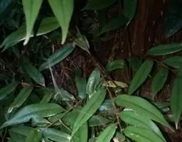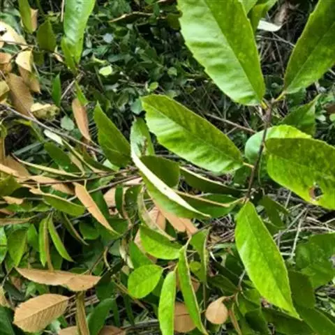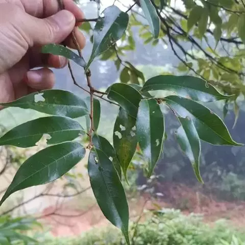叶厚纸质或近革质,椭圆形,卵形或长圆形,长12-30厘米,宽4-10厘米,很少较窄,顶端短或长渐尖,基部近于圆,或短尖,常一侧略歪斜,全缘或有时在顶部有少数裂齿,中脉在叶面平坦或下半段微凸起,侧脉生边10-15 条,网状直脉尚可见或甚明显,嫩叶两面同色,成长叶背面带苍灰色;叶柄长1.5-3厘米。