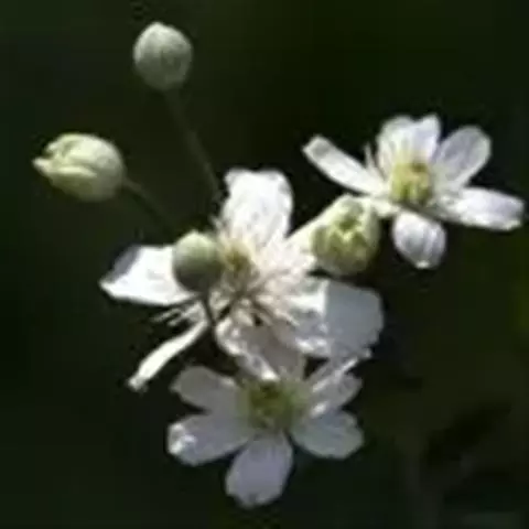 毛茛铁线莲 多年生 直立草本或草质藤本,长0.5-2米。根短而粗壮,木质,表面棕黑色,内面淡黄色。茎基部常四棱形,上部六棱形,有深纵沟,微被柔毛或近于无毛。基生叶有长柄,长7-10厘米,有3-5小叶,茎生叶柄短,长仅3-7厘米,常为三出复叶;小叶片薄纸质或亚革质,卵圆形至近于圆形,长4-6厘米,宽2-4厘米,顶端钝圆或钝尖,基部宽楔形,边缘有不规则的粗锯齿,常3裂,两面被疏柔毛,叶脉在上面不显,在下面凸起;小叶柄短,长仅1-2厘米。