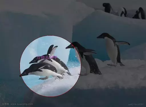 阿德利企鹅春天从大洋中返回繁殖地,越过积冰到达大陆,在行军中遇到冰层阻挡,能垂直高跳2米,跳上浮冰继续前进。