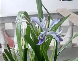 大扁竹兰扇形鸢尾,多年生草本,根茎横生,粗壮,黄白色,节明显;叶黄绿色,集生茎顶,叶片宽剑形,花蓝…