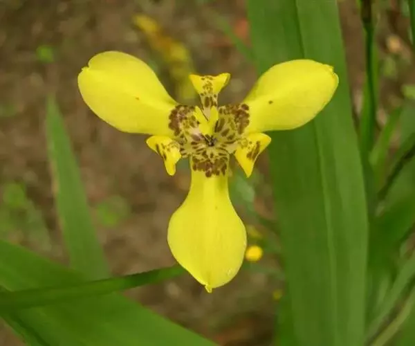黄扇鸢尾,学名是Trimezia martinicensis,科属为鸢尾科鸢尾属。