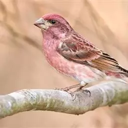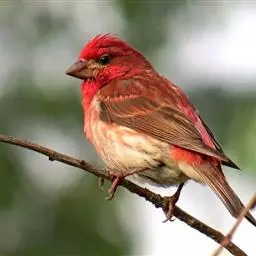 酒红朱雀小型鸟类,体长13~15厘米。雄鸟通体深红色,头部深朱红或棕红色,下背和腰玫瑰红色,…