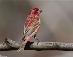 红眉朱雀:体长15厘米,是一种中等体型的朱雀。上体褐色斑驳,眉纹、脸颊、胸及腰淡紫粉,臀近白。…