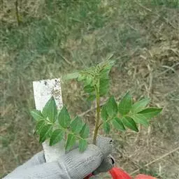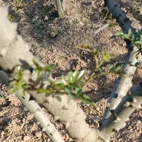 在5年生以下已结果的花椒树上,选取1年生枝条作插穗。插穗可用500mg/L的吲哚乙酸浸泡30分钟,或500mg/L的萘乙酸浸泡2小时,也可采用温床催根的方法。经处理的插穗,生根成苗率高。