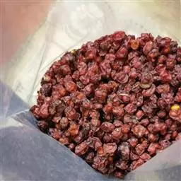 采收时间及方法:花椒果实成熟期一般在立秋至处暑前后。花椒成熟时,果皮呈紫红色或淡红色,果皮缝合线突起,少量开裂,种子黑色光亮。可闻到浓郁的麻香味,这是最适宜的采收时期,采收果实一般是用手摘或剪子剪。 强枝果穗的采摘:在大椒穗下第一个叶腋间有一个饱满芽,这个芽是下一年的结果芽,要妥善加以保护,采摘椒穗时,一定不要连同这个腋芽摘掉,以免影响来年产量。 弱枝果穗的采摘:弱枝果穗下第一个芽发育不饱满;第二个或第三个芽发育较为健壮,在采摘时应保留第二个或第三个芽,否则影响第二年产量。