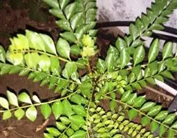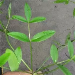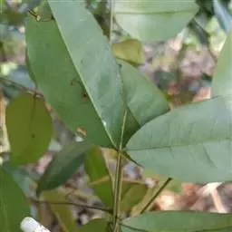 叶有小叶5-13片,叶轴常有甚狭窄的叶翼;小叶对生,无柄,卵形,椭圆形,稀披针形,位于叶轴顶部的较大,近基部的有时圆形,长2-7厘米,宽1-3.5厘米,叶缘有细裂齿,齿缝有油点。其余无或散生肉眼可见的油点,叶背基部中脉两侧有丛毛或小叶两面均被柔毛,中脉在叶面微凹陷,叶背干后常有红褐色斑纹。