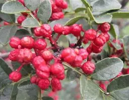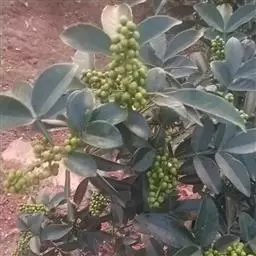 花椒果子 种子处理花椒种壳坚硬,油质多,不透水,发芽比较困难,播种前首先要进行脱脂处理和贮藏。秋播,将种子放在碱水中浸泡,1kg种子用碱面0.025kg,加水以淹没种子为度,除去空庇粒,浸泡2天,搓洗种皮油脂,捞出后用清水冲净即可播种。春播可采用层积沙藏、牛粪拌种、马粪混堆或小窖贮藏等几种方法处理种子。层积沙藏即常规处理方法;牛粪拌种即用新鲜牛粪6份与花椒种子1份,混合均匀,埋入深30厘米的坑内冬藏,次春播种前取出打碎,连同牛粪一起播种;马粪混堆在3月中旬至4月中旬,将水选的花椒种子与3份马粪混放于阳光下堆放,翻动露白后播种;小窖贮藏即挖窖灌水冬藏。