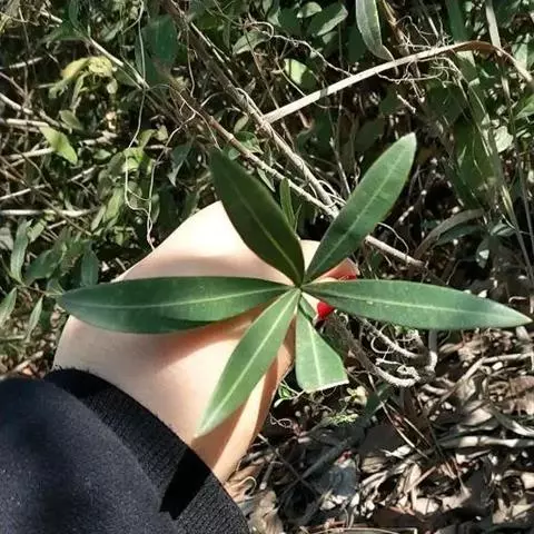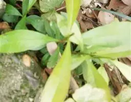叶3-4片轮生,间有对生,薄草质,长圆状椭圆形,顶端渐尖呈尾状或急尖,基部楔形或钝,长7-20厘米、宽2.5-4.5厘米,叶面亮绿色,叶背浅绿色稍带灰白色,两面无毛;侧脉每边20-50条,横出近平行,叶缘网结,两面凸起;叶柄长1-2厘米。