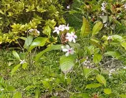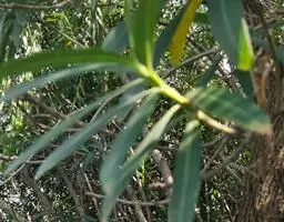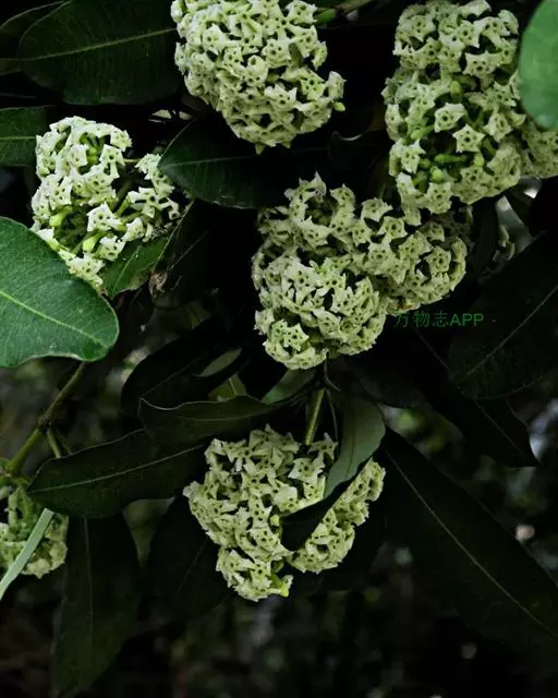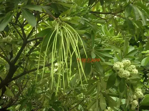 盆架树(Winchia calophylla A. DC. ):常绿乔木,高达30米,直径达1.2米;枝轮生,树皮淡黄色至灰黄色,具纵裂条纹,内皮黄白色;小枝绿色,嫩时稜柱形,具纵沟,老时成圆筒形,落叶痕明显。叶3-4片轮生,长圆状椭圆形,顶端渐尖呈尾状或急尖,叶面亮绿色,叶背浅绿色稍带灰白色,两面无毛。花多朵集成顶生聚伞花序,花冠高脚碟状,花冠筒圆筒形,裂片广椭圆形,白色,长3-6毫米,宽约2.5毫米,外面被微毛,内面被柔毛。种子长椭圆形,扁平,两端被棕黄色的缘毛。花期4-7月,果期8-12月。