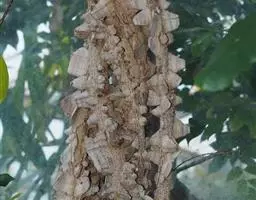 盆架树是常绿乔木,高达30米,直径达1.2米;枝轮生,树皮淡黄色至灰黄色,具纵裂条纹,内皮黄白色,受伤后流出大量白色乳汁,有浓烈的腥臭味;小枝绿色,嫩时稜柱形,具纵沟,老时成圆筒形,落叶痕明显。