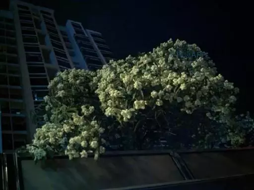每天经过四川南路,也特别留意了这些花开正艳的盆架子树,的确“花香”太浓,有异味。 盆架子又称:岭刀柄、山苦常、鸭脚常,面盆架子,白叶糖胶。产地海南岛和云南,印度,缅甸,印度尼西亚。每年9至12月,盆架子树会开出大量花朵,这些花朵带有一股特殊的腥臭味。“令人觉得昏眩、胸闷、有点反胃。”一位对盆架子树反映“强烈”的市民称。