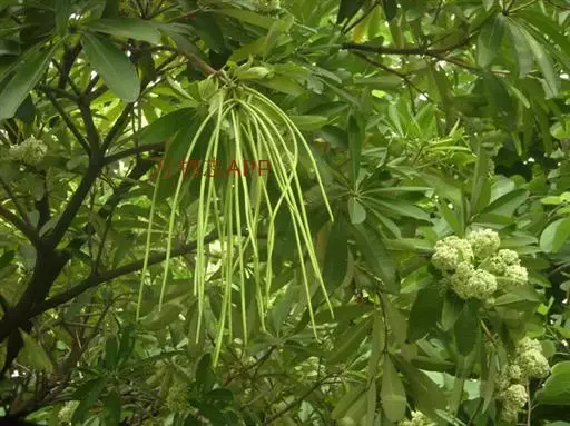 蓇葖合生,长18-35厘米,直径1-1.2厘米,外果皮暗褐色,有纵浅沟;种子长椭圆形,扁平,长约1厘米,宽约4毫米,两端被棕黄色的缘毛。花期4-7月,果期8-12月。