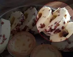 乳酪蛋糕 是一款甜点,制作原料主要有消化饼干、熔化奶油、奶油奶酪等。又称奶酪蛋糕。是以海绵蛋糕、派皮等为底坯,将加工后的乳酪混合物倒入上面,经过烘烤、装饰而成的制品。