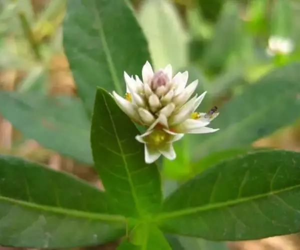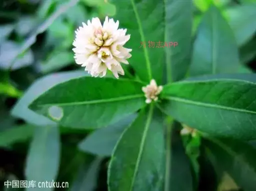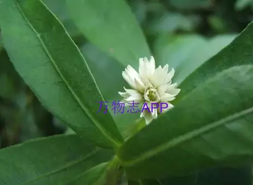 鉴别特征:水生型植株无根毛,茎长达1.5~2.5m;陆生型植株可形成 喜旱莲子草 直径达1cm左右的肉质贮藏根,有根毛,株高一般30cm,茎杆坚实,节间最长15cm,直径3~5mm,髓腔较小。叶对生,长圆形至倒卵状披针形。头状花序具长1.5~3cm的总梗。花白色或略带粉红,雄蕊5。