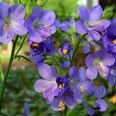花荵是一种花荵科 、花荵属植物,多年生草本,根匍匐,圆柱状,多纤维状须根。茎直立,高0.5-1米,无毛或被疏柔毛。羽状复叶互生,茎下部叶长可达20多厘米,茎上部叶长7-14厘米,小叶互生,11-21片,长卵形至披针形,顶端锐尖或渐尖,基部近圆形,全缘,两面有疏柔毛或近无毛,无小叶柄;叶柄生下部者长,上部具短叶柄或无柄,与叶轴同被疏柔毛或近无毛。聚伞圆锥花序顶生或上部叶腋生,疏生多花;花梗连同总梗密生短的或疏长腺毛;花萼钟状,被短的或疏长腺毛,裂片长卵形、长圆形或卵状披针形,顶端锐尖或钝头,稀钝圆,与萼筒近相等长;花冠紫蓝色,钟状,裂片倒卵形,顶端圆或偶有渐狭或略尖,边缘有疏或密的缘毛或无缘毛;雄蕊着生于花冠筒基部之上,通常与花冠近等长,花药卵圆形,花丝基部簇生黄白色柔毛;子房球形,柱头稍伸出花冠之外。蒴果卵形。种子褐色,纺锤形,种皮具有膨胀性的粘液细胞,干后膜质似种子有翅。