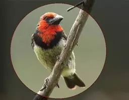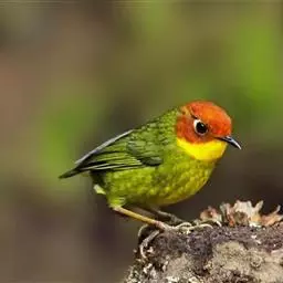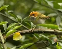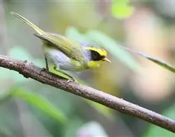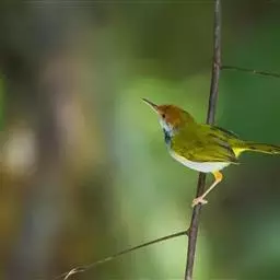 棕脸鹟莺:体长10厘米,是一种色彩亮丽而有特色的莺鸟。头栗色,具黑色侧冠纹。上体绿,腰黄色。下体白,…