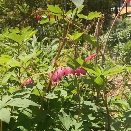 荷包牡丹,(拉丁学名:Dicentra spectabilis (L.) Lem.),为罂粟科、荷包牡丹属多年生草本植物,株高30~60cm。地上茎直立,圆柱形,带紫红色,根状茎肉质,小裂片通常全缘,表面绿色,背面具白粉,两面叶脉明显;叶柄长约10厘米,形似当归。