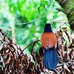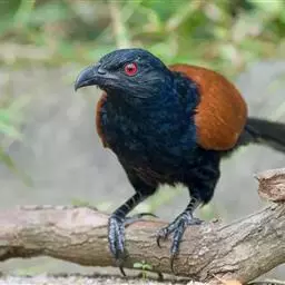 绿嘴地鹃:体形似小鸦鹃,但羽色大致绿灰;嘴绿色,头侧眼的周围有一裸区;后爪弯曲。虹膜赤红色,…