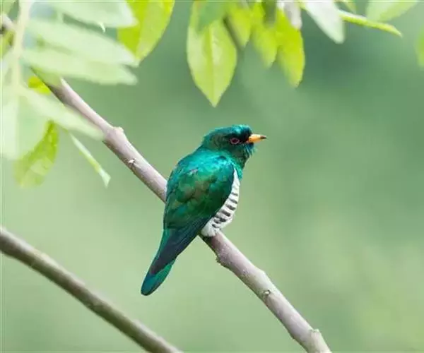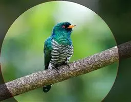 翠金鹃(学名:Chrysococcyx maculatus)体长约17厘米,雄鸟上体辉绿色,头至背缀有很多棕栗色,颏和喉具黑褐色横斑;雌鸟上体自背以下具棕色羽缘。虹膜淡红褐色至绯红色,眼圈绯红色,嘴亮橙黄色,尖端黑色,脚暗褐绿色。