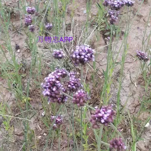 马鞭草 多年生草本,高30-120厘米。茎四方形,近基部可为圆形,节和棱上有硬毛。叶片卵圆形至倒卵形或长圆状披针形,长2-8厘米,宽1-5厘米,基生叶的边缘通常有粗锯齿和缺刻,茎生叶多数3深裂,裂片边缘有不整齐锯齿,两面均有硬毛,背面脉上尤多。 穗状花序顶生和腋生,细弱, 结果时长达25百米花小,无柄,最初密集,结果时疏离;苞片稍短于花萼,具硬毛;花萼长约2毫米,有硬毛,有5脉,脉间凹穴处质薄而色淡;花冠淡紫至蓝色,长4-8毫米,外面有微毛,裂片5;雄蕊4,着生于花冠管的中部,花丝短;子房无毛。果长圆形,长约2毫米,外果皮薄,成熟时4瓣裂。花期6-8月,果期7-10月。