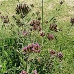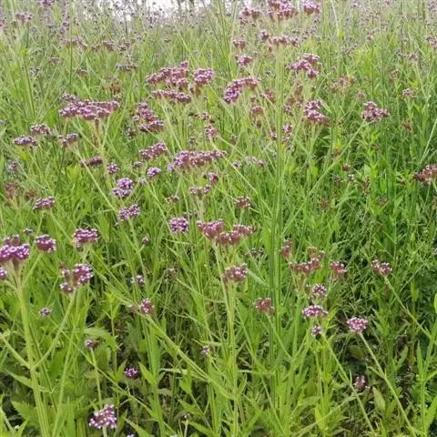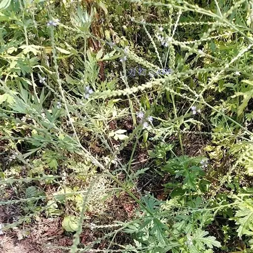 马鞭草(拉丁学名:Verbena officinalis L.),多年生直立草本植物,高可达120厘米,基部木质化,单叶对生,卵形至长卵形,两面被硬毛,下面脉上的毛尤密。顶生或腋生的穗状花序,花蓝紫色,无柄,花萼膜质,筒状,花冠微呈二唇形,花丝极短;子房无毛,果包藏于萼内,小坚果。花果期6-10月。