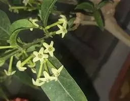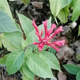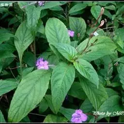 叶对生,叶柄长1至4厘米,叶片呈卵形至椭圆形,长5至11厘米,宽2至5厘米,全缘或具微小圆齿。在长3至4厘米的总状花序上,排列出花蕾绽放至果实形成的不同步骤:基部的花早开及先结果,顶部的花最为晚开,花果并存的状态最常见于12月至翌年2月。花冠呈一侧膨胀的管状,长1.2至1.5厘米,白色,5裂,最下瓣中央有一片紫斑。蒴果长圆形,长1.8至2厘米。种子2至4颗,边缘无毛。