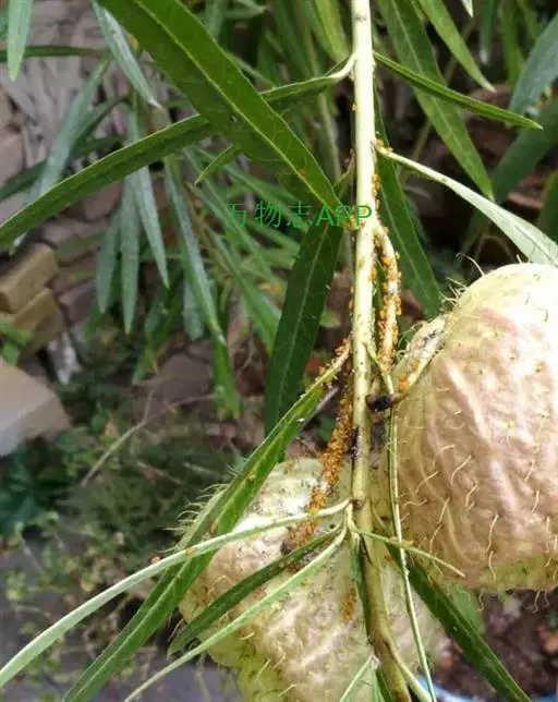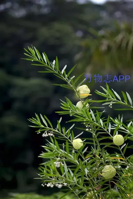 萝藦科宿根草本直立灌木,株高 80~150 公分,花期四月至翌年二月,在台湾中部山区及阿里山等地都可以看到它的踪迹。嫩枝绿色,老枝灰白色,细长直立。叶对生,线形细长;花白色,垂悬的繖形花序顶生或腋生,约十数朵小花;果实如膨胀的汽球,中空没有果肉,表面有粗毛,成熟后后开裂,种子具白色绒毛可飞散。