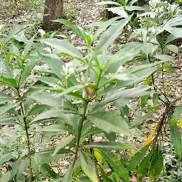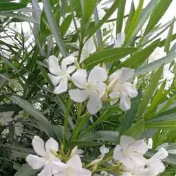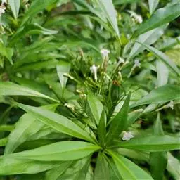 唐棉(Asclepias fruticosa L.),株形直立,全株具白色乳汁;叶:线形似柳叶,色浓绿,背面淡绿色,对生;花:繖形花序,腋生,乳白色下垂状,花期秋至隔年春季。
