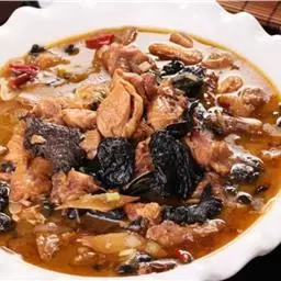小鸡炖蘑菇是一道东北炖菜。通常是用干蘑菇、鸡肉和粉条一同炖制而成。榛蘑可以衬托出鸡肉的鲜香,粉条滑…