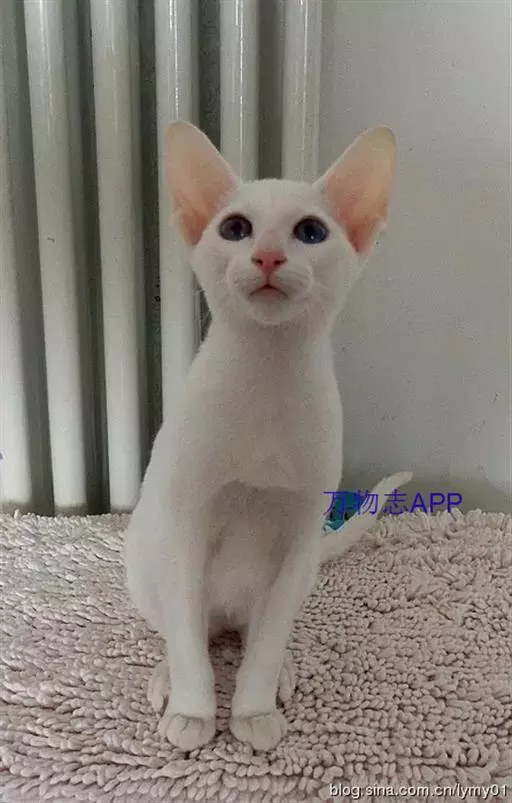 大耳朵的东方短毛猫,它的诞生似乎是个意外。当初为了制造纯白暹罗猫,便以白猫与暹罗猫配种, 但后代却显现出各色的遗传基因,诞生了多彩多姿的东方短毛猫。除了纯白色,另有红色、棕色、巧克力色的斑纹或色块组合出现,而纯黑乌亮的黑猫,在东方特别称为「乌木」。 东方短毛猫偶尔也会生出暹罗猫来,但在血统证明上则不被承认,不仅修长优雅,走起路来的姿态雍容高贵,非常有教养的样子这种猫继承了暹罗猫的体形和短毛猫的毛色,被称为外国白,同时产生的其他颜色如紫色,就称为外国紫。在美国,东方短毛猫的毛色已发展到验阶段灼毛色则更多,东方短毛猫在世界奠定了重要地位。