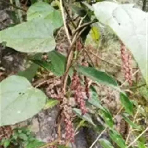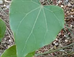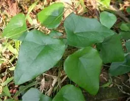 根圆柱形,稍扭曲,直径0.6-1.5cm。表面浅棕色,有纵向纹理和支根痕,弯曲处有横裂纹。质稍硬,断面灰黄色。气微,味苦。叶破碎,完整的叶阔心形,长6-18cm,先端渐尖,基部浅心形,全缘。表面黄绿色,下表面被毛茸,掌状脉5-7条较明显。质脆。气微,味苦。