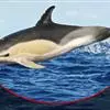 真海豚,身体细而流线型。体色十分复杂而独特,通常十字交叉型,黄褐色在前灰色在后,背面黑色向下延伸,…