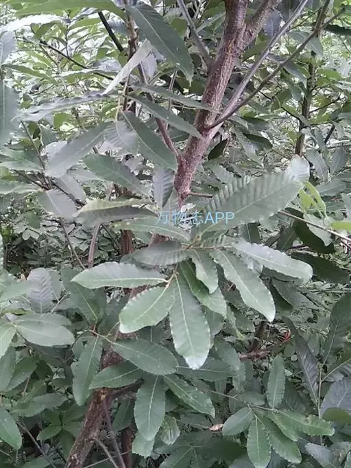 叶片卵状披针形或长椭圆形,长8-15(-20)厘米,宽2-6(-8)厘米,顶端渐尖,基部圆形或宽楔形,叶缘具刺芒状锯齿,叶背密被灰白色星状绒毛,侧脉每边13-18条,直达齿端;叶柄长1-3(-5)厘米,无毛。