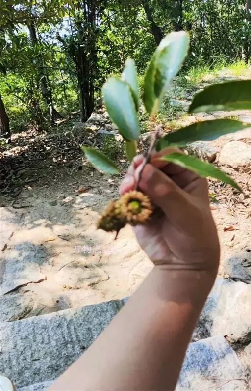 坚果近球形或宽卵形,高、径约1.5厘米,顶端圆,果脐突起。花期3-4月,果期翌年9-10月。