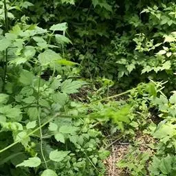 多年生 木 质藤本,长2-3米。茎六稜形,有浅纵沟纹,淡黄绿色或微带紫红色,被稀疏开展的曲柔毛。一至二回羽状复叶,连叶柄长12-20厘米,小叶5-9或更多,叶柄及叶轴上面有槽;小叶片宽卵圆形或卵状椭圆形,长4-5.5厘米,宽2-5厘米,顶端钝尖,基部心形、截形或楔形,边缘3裂,有粗锯齿或有时裂成3小叶,叶脉在表面微下陷,在背面隆起,两面均被平伏的柔毛,尤以背面叶脉上较密;小叶柄长1-2厘米;叶柄长3-4.5厘米。