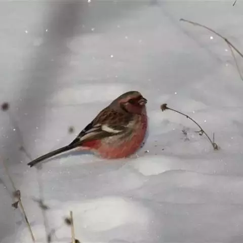 粉红腹岭雀:为燕雀科岭雀属的鸟类。体重25-34克,体长150-182毫米。是一种中等体型的深色岭雀。…