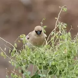 锡嘴雀(学名:Coccothraustes coccothraustes):全长184厘米,头顶棕褐,头侧及腰和尾上覆羽等较淡;后颈灰色,翕和下背微褐;翅上的内侧覆羽白,形成宽阔白色带斑;外侧覆羽及飞羽黑色,后者先端具紫色和蓝绿色光辉,内翈具白色斑;尾羽大都黑褐色,先端白色;嘴基周围及眼先黑,至喉则形成大形黑斑;下体余部淡黄褐,至下腹及尾下覆羽转白。雌鸟羽色较雄者暗淡,头顶褐灰。