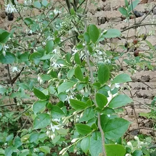 着花3-5朵,下部常单花腋生,花白色。核果倒卵形或近球形。花期4-6月,果期8-10月。