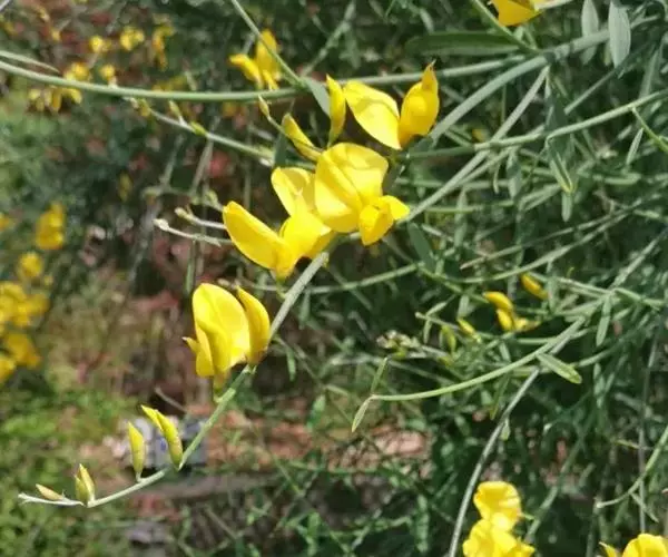 鹰爪豆(学名:Spartium junceum L.),是双子叶植物纲 、豆科、鹰爪豆属常绿灌木,高可达3米;树冠圆球形密集成丛,茎直立,分枝细长,嫩枝绿色,单叶;叶柄短,叶片狭椭圆形至线状披针形,上面无毛,下面稀被贴伏柔毛,叶片早落。花单生叶腋,总状花序,有花5-20朵;苞片卵状披针形,长约4毫米,花梗短,小苞片线形,花萼鞘状焰苞形,膜质,旗瓣阔卵形至圆形,翼瓣椭圆形较短,荚果线形,种子长圆形,4-7月开花。