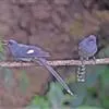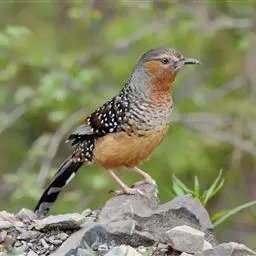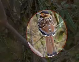 大噪鹛:中型鸟类,体长32-36厘米。额至头顶黑褐色,背栗褐色满杂以白色斑点,…