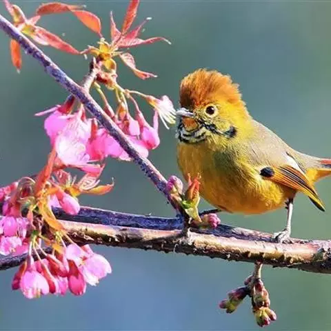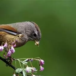 栗耳凤鹛,雌雄羽色相似。额、头顶至枕灰色,头顶有一短的不甚明显的羽冠,…